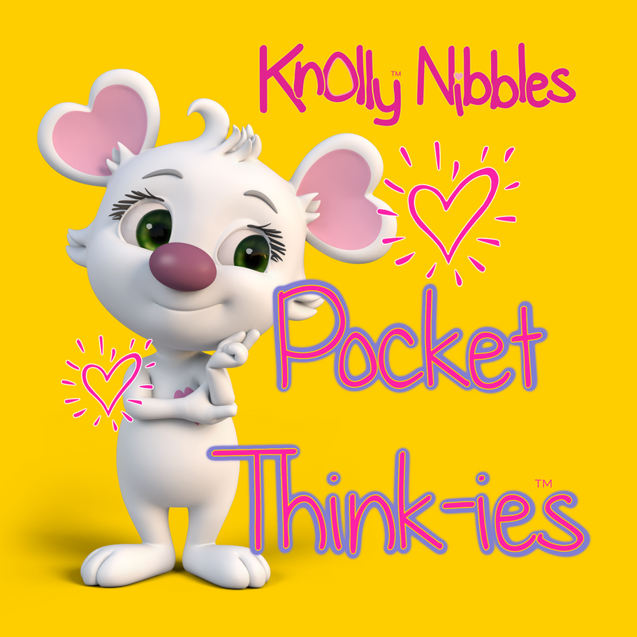 Pick One. Pocket One. Share One. Meet Pocket Think-ies! Knolly's pint-sized positivity is your daily dose of kindness and love. Perfect for kids and grown-ups alike. Pick a random one and tuck it in a pocket, backpack or someone's heart. Each 2.5" x 2.5" card is like a mini hug and reminds us how little things can start a ripple of kindness and positivity everywhere with anyone. Pack of 30 in a cute, silky, little bag.